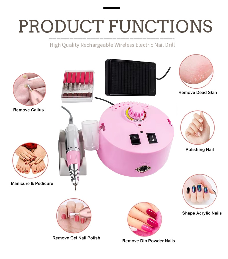उत्पाद सुविधा और 605 हाई स्पीड 30000 आरपीएम नेल पोलिश रिमूवर इलेक्ट्रिक नेल फाइल का अनुप्रयोग