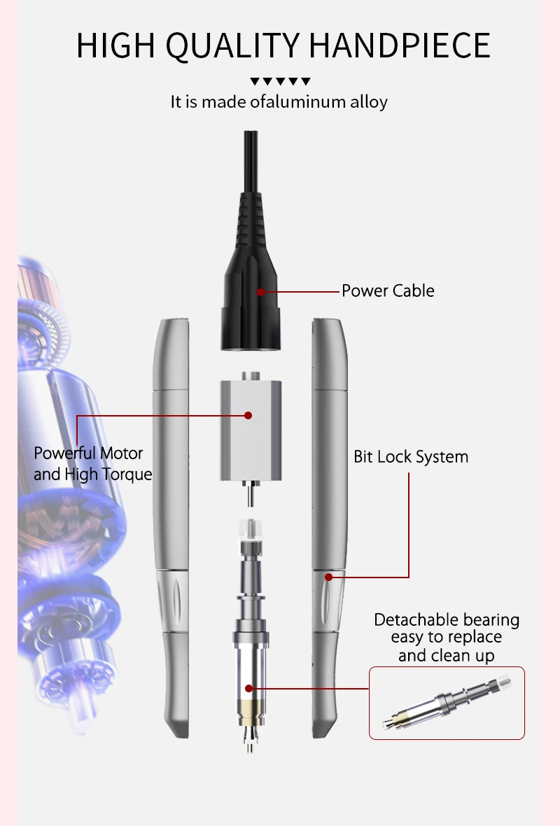 नेल ड्रिल इलेक्ट्रिक हैंडपीस 65w 35000rpm को नुकसान पहुंचाना आसान नहीं है