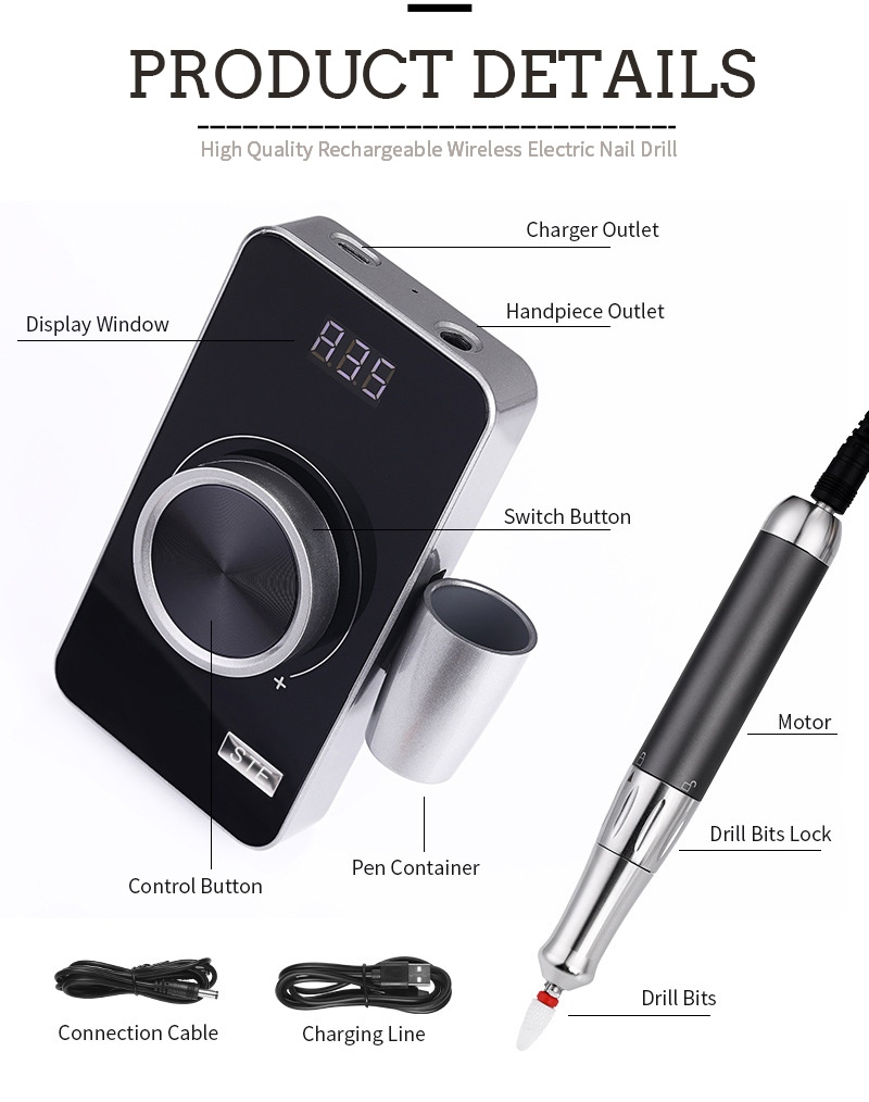 | एक्सफ़ोलीएटिंग 35,000 आरपीएम इलेक्ट्रिक नेल ड्रिल विवरण |