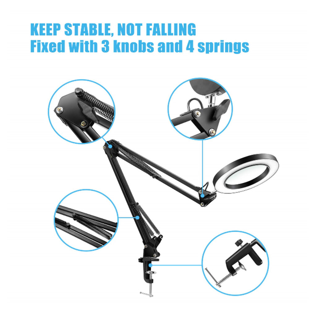 यह फोल्डेबल 360-डिग्री घूमने वाला आवर्धक डेस्क लैंप एक सुंदर और परिष्कृत डिज़ाइन पेश करता है। इसकी हल्की रोशनी आंखों के लिए आसान है, जो आरामदायक, चकाचौंध मुक्त रोशनी के लिए भोर की नरम, प्राकृतिक रोशनी का अनुकरण करती है। टैटू, कढ़ाई और नेल आर्ट सहित कई अनुप्रयोगों के लिए उपयुक्त।