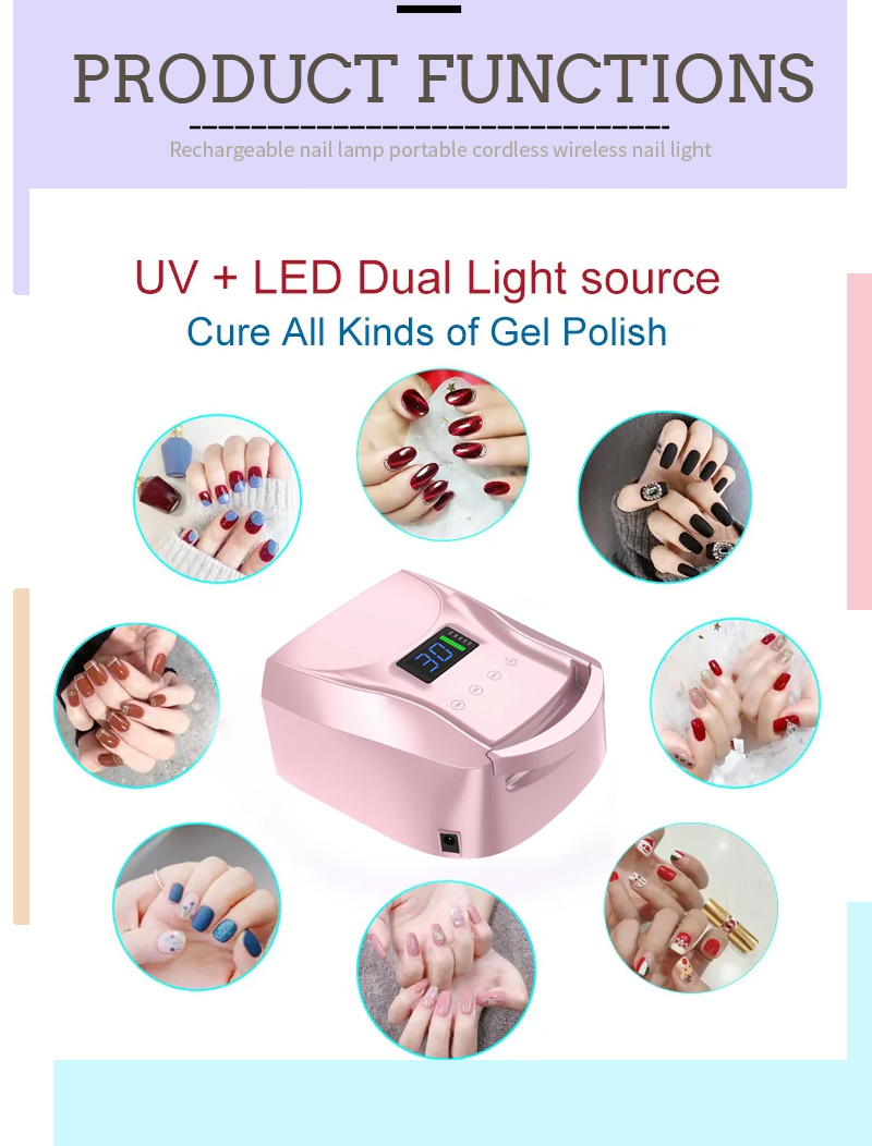 2, रिचार्जेबल नेल बेकिंग लाइट प्रोफेशनल वर्जन 96W एक गैर-स्लिप बेस से लैस है।