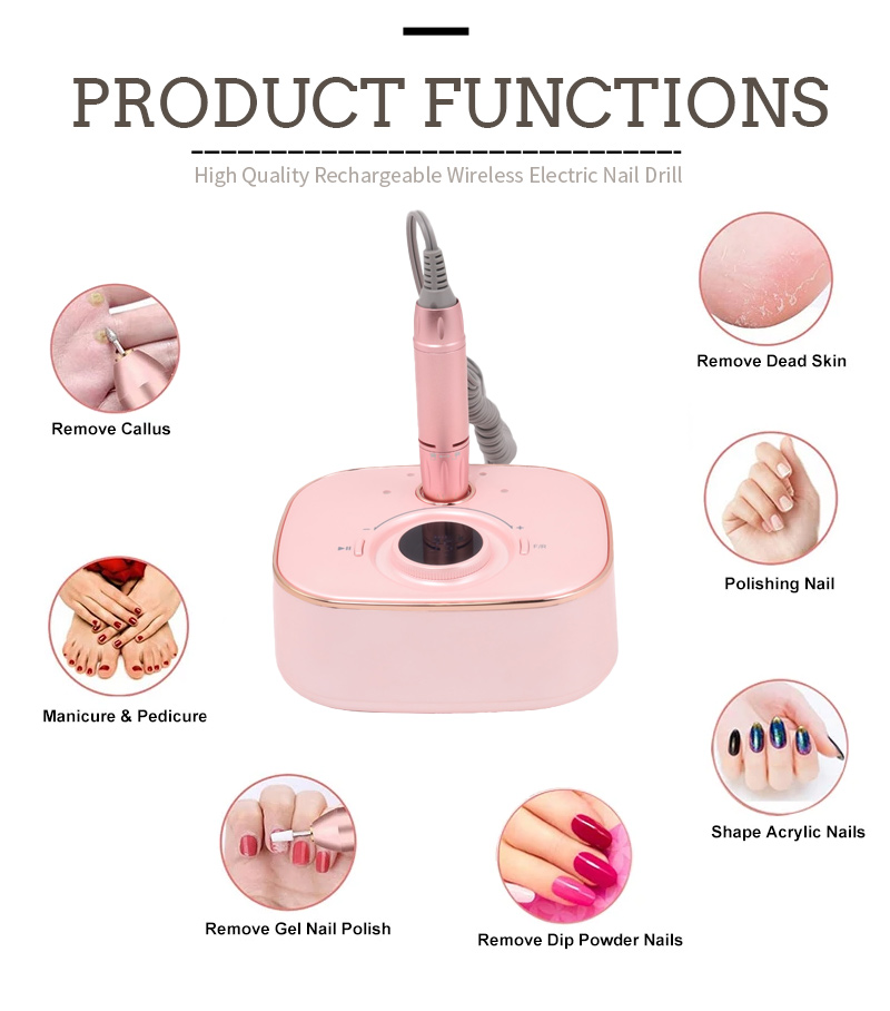 रिचार्जेबल नेल ड्रिल सेट पैर की उंगलियों पर नेल ड्रिल 35w 35000rpm
