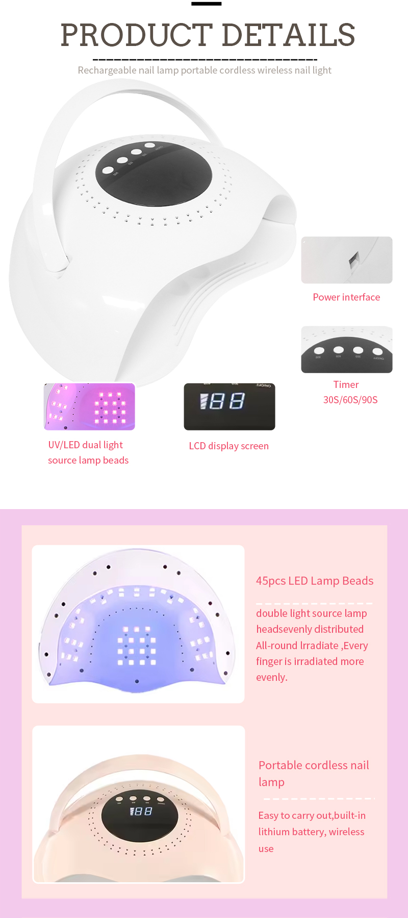 नेल लैंप उत्पाद सुविधाएँ और अनुप्रयोग