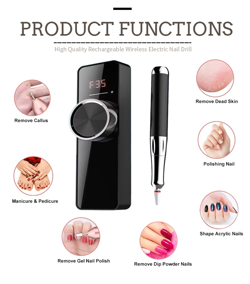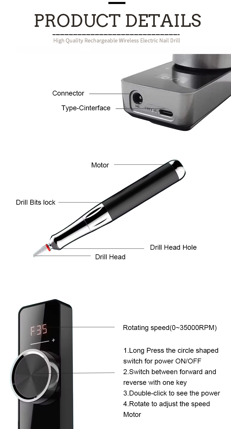 पॉलिश हटाने के लिए मॉडल 109 हाई-स्पीड 35,000 आरपीएम इलेक्ट्रिक नेल फाइल की उत्पाद विशेषताएं और अनुप्रयोग