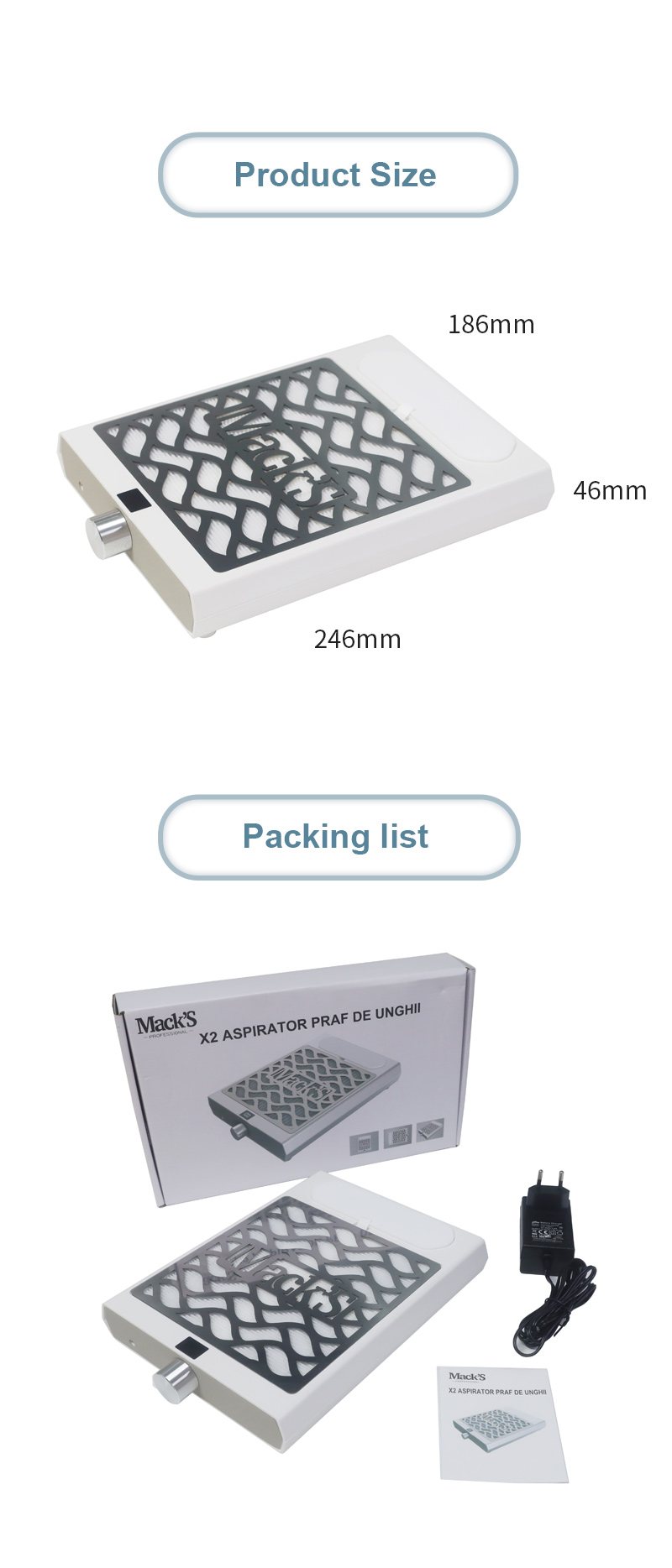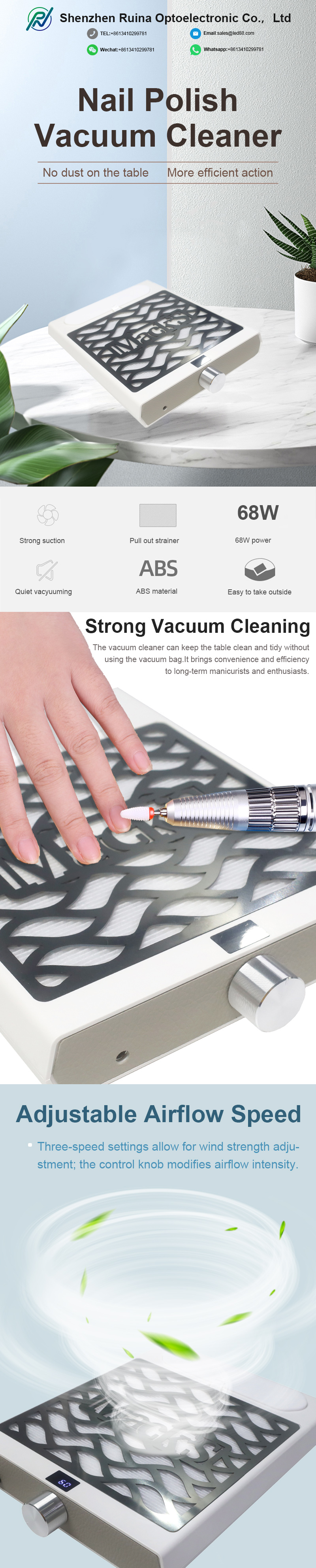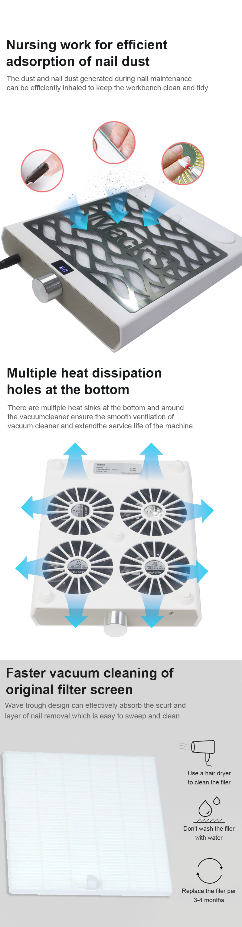 उत्पाद नाखून मलबे के मजबूत सोखने से धूल का रिसाव नहीं होता है, काउंटरटॉप को साफ सुथरा रखें, तेज वैक्यूमिंग से धूल का रिसाव नहीं होता है, उच्च शक्ति अधिक कुशल होती है।