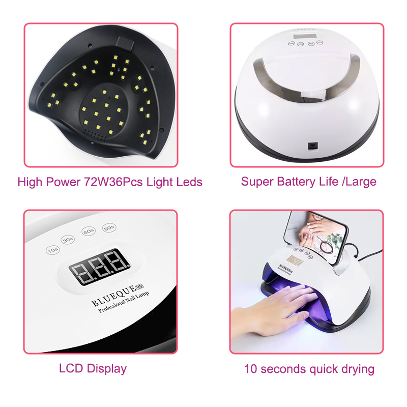 उत्पाद बिना सिकुड़न के गोंद को समान रूप से सुखाना सुनिश्चित करता है। इसके दोहरे प्रकाश स्रोत हाथों के मलिनकिरण और आंखों के तनाव को रोकने के लिए हल्का ताप प्रदान करते हैं, जो हाथों और पैरों दोनों के लिए उपयुक्त है, जिससे उल्लेखनीय रूप से तेजी से सूखने वाले परिणाम मिलते हैं।
