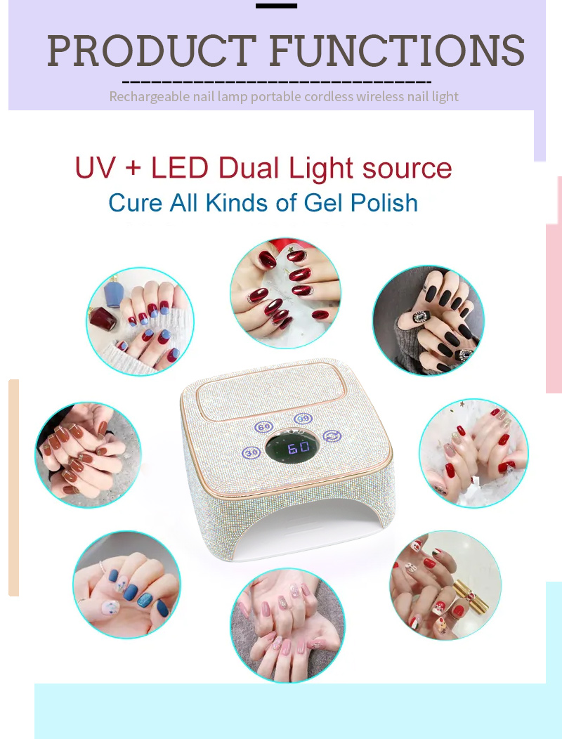 1, दोहरी प्रकाश स्रोत एलईडी मोतियों, विभिन्न प्रकार के नाखून गोंद और कार्यात्मक गोंद को सेंकना कर सकते हैं।