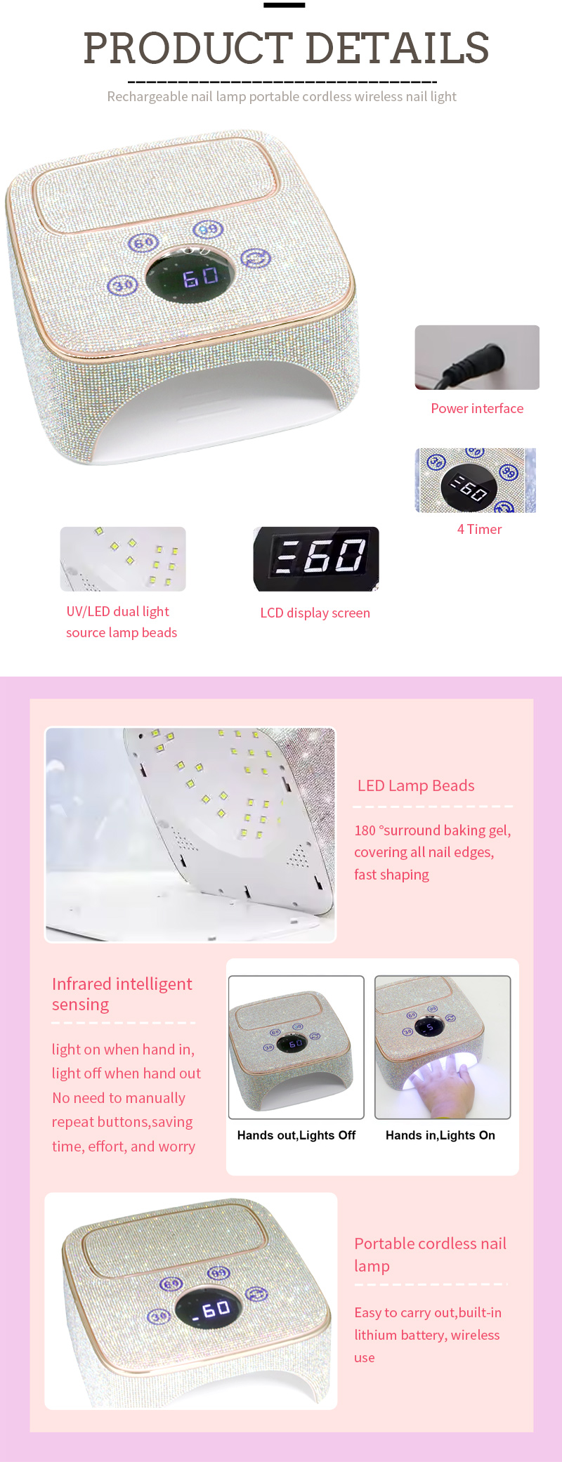 नेल आर्ट क्विक ड्राई एलईडी विशेष इलाज बेकिंग गोंद दीप का उत्पाद विवरण