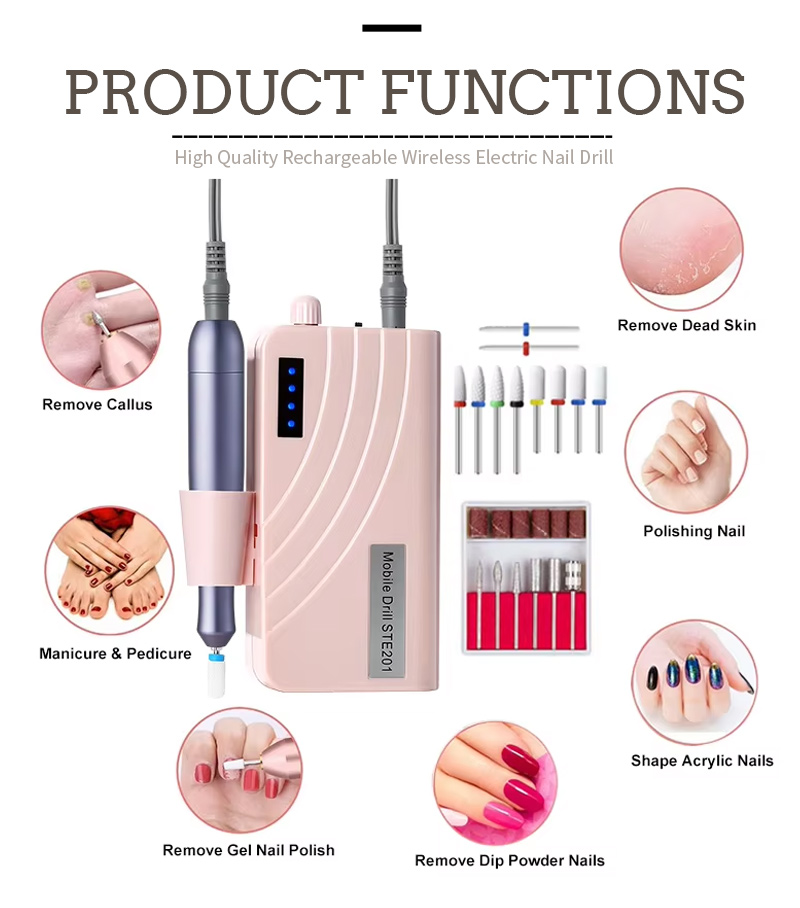उत्पाद सुविधा और 201 हाई स्पीड 30000 आरपीएम नेल पॉलिश रिमूवर इलेक्ट्रिक नेल फाइल का अनुप्रयोग