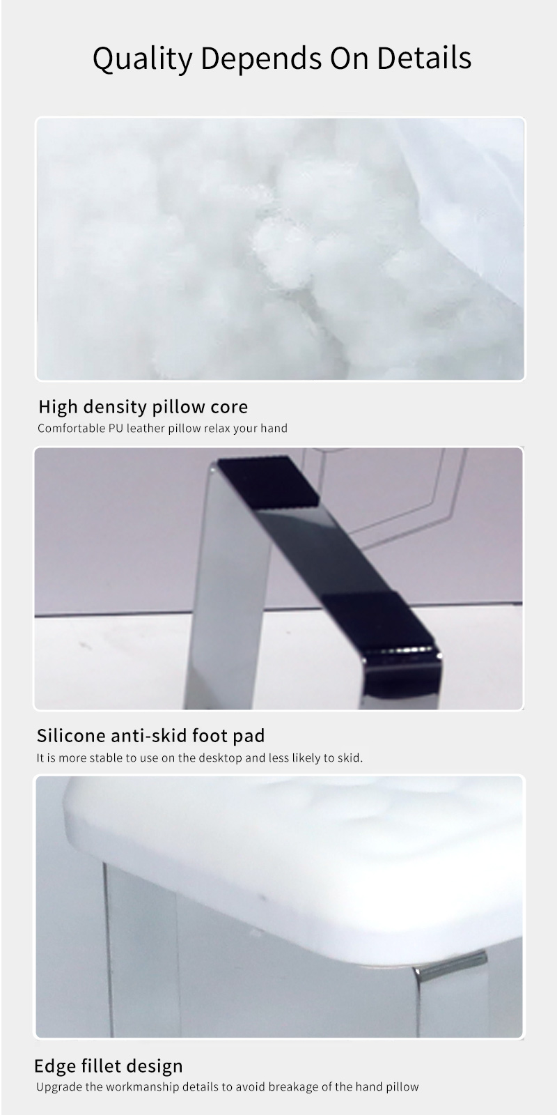 आरामदायक मैनीक्योर हाथ तकिया, उच्च लचीलापन और नरम फोम सामग्री, पश्चिमी चमड़े के कवर। उच्च घनत्व तकिया कोर, आरामदायक तकिया प्रभावी रूप से हाथ की थकान को दूर कर सकता है।
