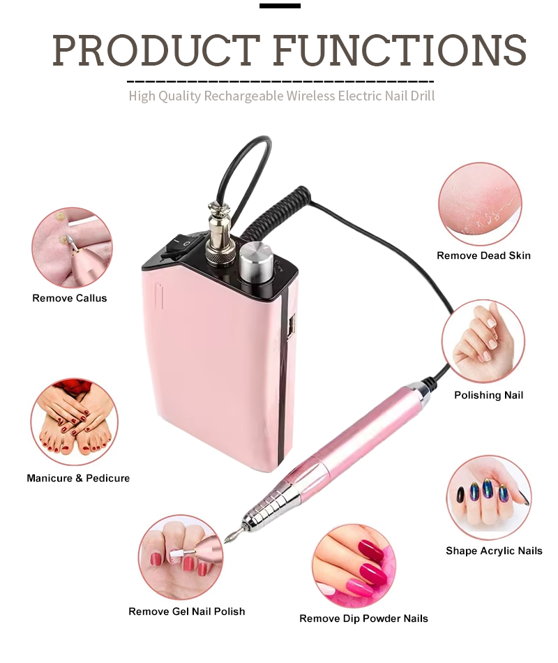 नेल ड्रिल सेट इलेक्ट्रिक फ़ाइल प्रोफेशनल 65w 35000rpm