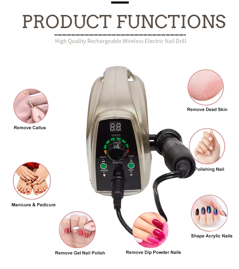 उत्पाद सुविधा और 014 हाई स्पीड 35000 आरपीएम नेल पोलिश रिमूवर इलेक्ट्रिक नेल फाइल का अनुप्रयोग