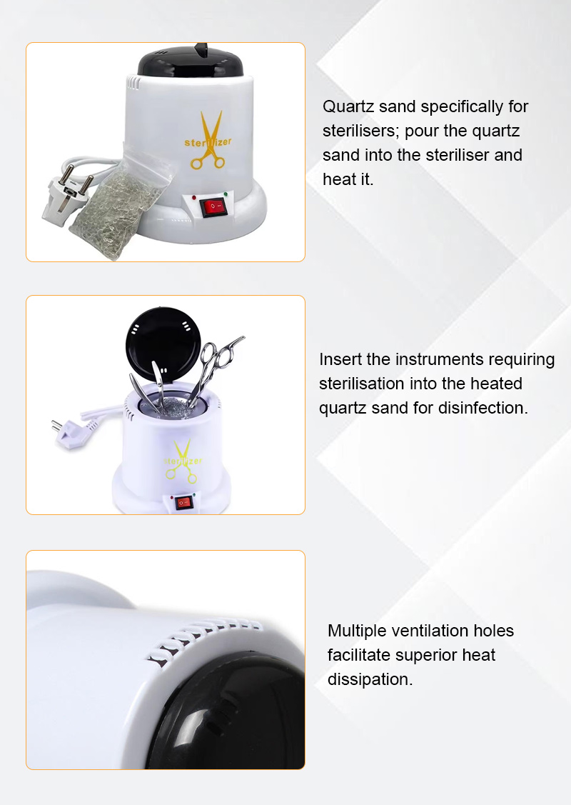 यह स्टरलाइज़र मुख्य रूप से हीटिंग रिंग के माध्यम से गर्मी उत्पन्न करता है, कीटाणुशोधन के लिए उच्च तापमान का उपयोग करता है।