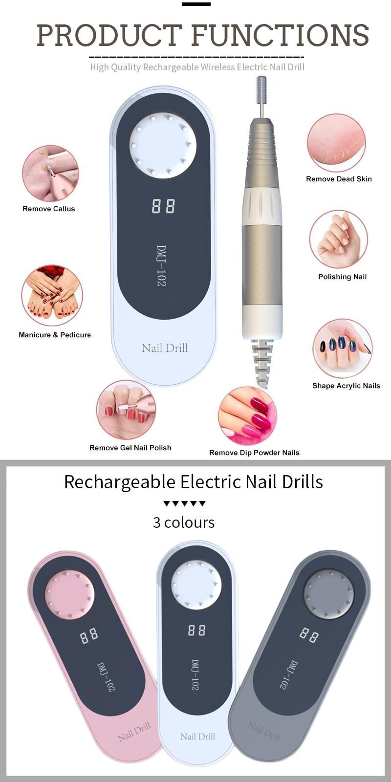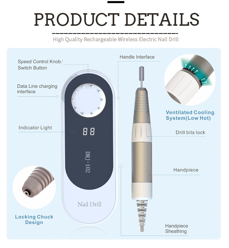 पॉलिश हटाने के लिए DMJ-102 हाई-स्पीड 35,000 RPM इलेक्ट्रिक नेल फाइल: विशेषताएं और अनुप्रयोग