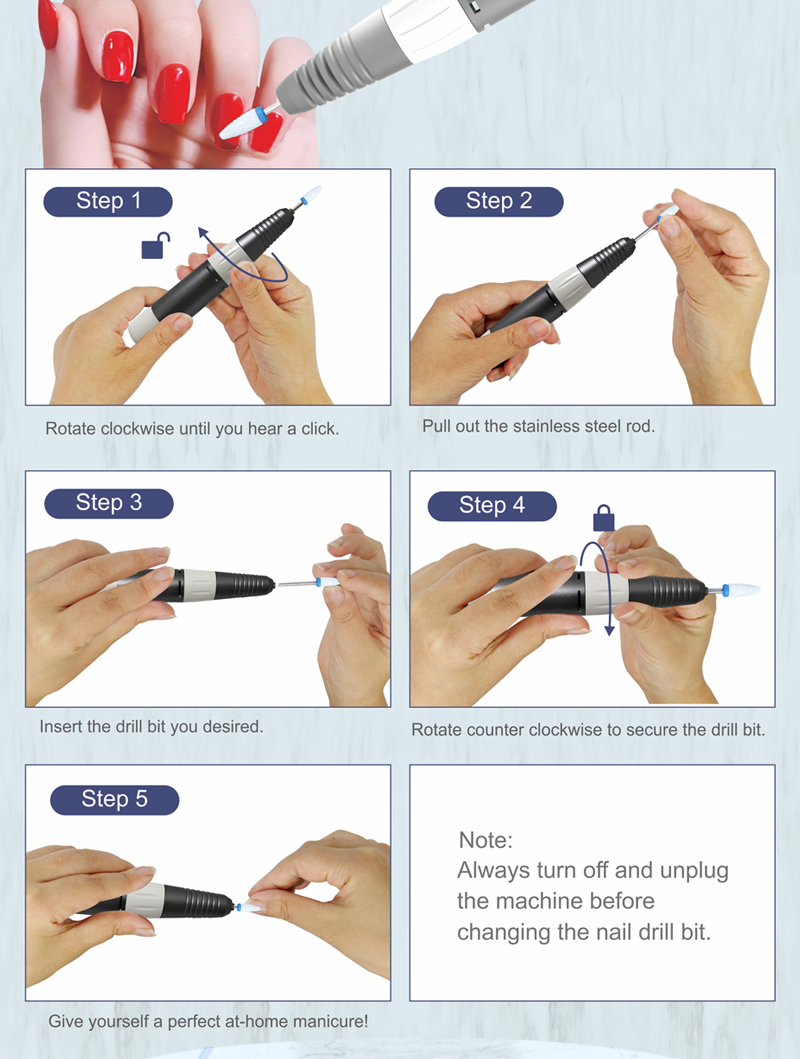 आवश्यक नेल ड्रिल सेट इलेक्ट्रिक 65w 35000rpm