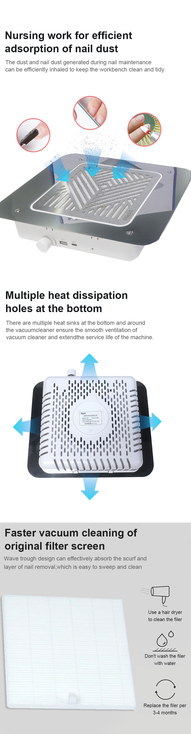 उत्पाद नाखून मलबे के मजबूत सोखने से धूल का रिसाव नहीं होता है, काउंटर टॉप को साफ सुथरा रखें, तेज वैक्यूमिंग से धूल का रिसाव नहीं होता है, उच्च शक्ति अधिक कुशल होती है।
