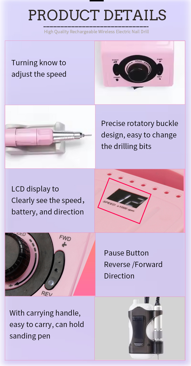 शक्तिशाली मोटर 65w 35000rpm के साथ पोर्टेबल नेल ड्रिल सेट इलेक्ट्रिक