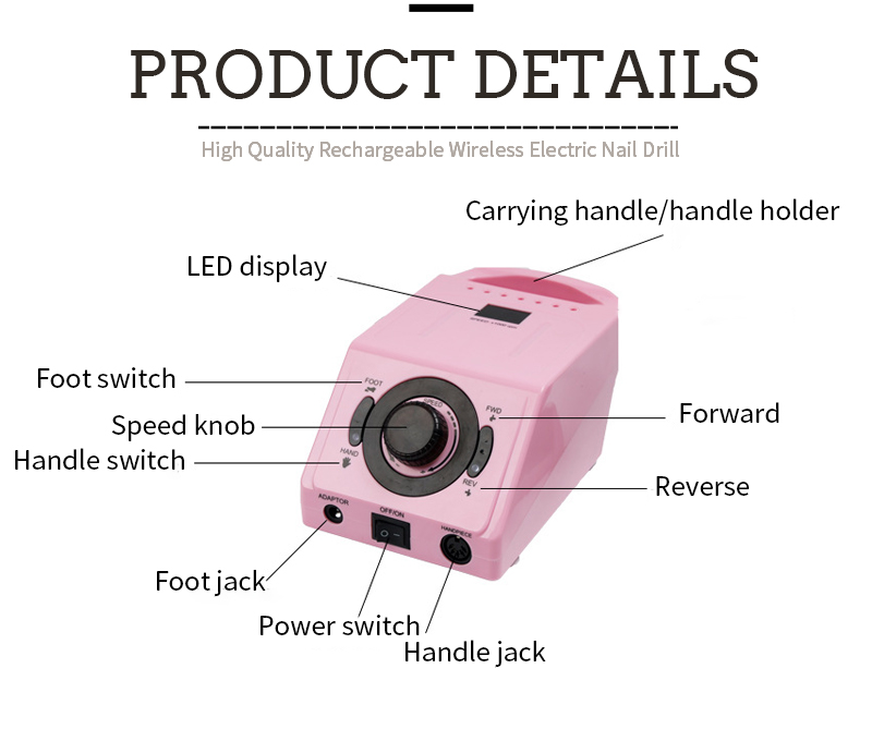 नेल ड्रिल इलेक्ट्रिक हैंडपीस 65w 35000rpm को नुकसान पहुंचाना आसान नहीं है