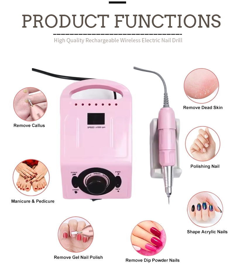 नेल ड्रिल सेट इलेक्ट्रिक फ़ाइल प्रोफेशनल 65w 35000rpm
