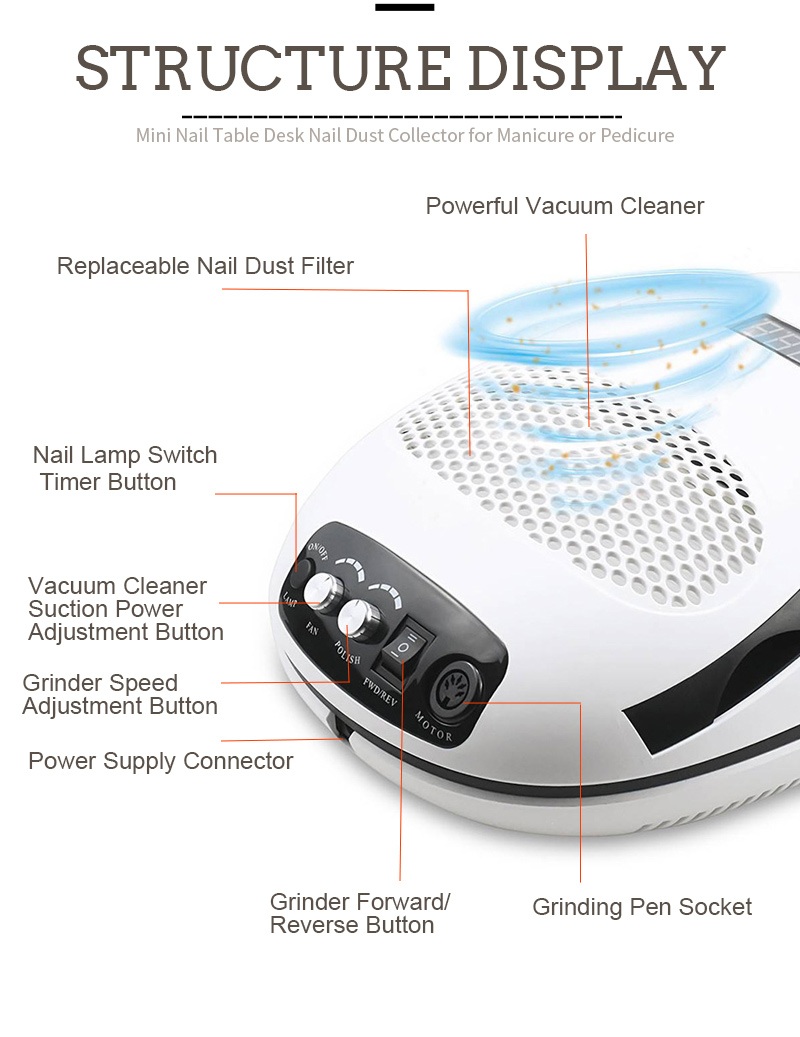 तकिये के साथ ट्रिपल-कॉम्बिनेशन हैंड-हेल्ड नेल लैंप के आयाम 310 मिमी लंबाई, 280 मिमी चौड़ाई और 120 मिमी ऊंचाई हैं, बड़ी क्षमता और दोनों हाथों और पैरों का उपयोग करने की क्षमता के साथ, जो बहुत सुविधाजनक है।